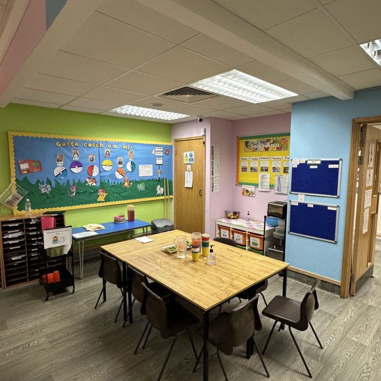 Our snack area is a bright, inviting space where children enjoy relaxed mealtimes. With colourful tables, child-friendly furniture, and clearly labelled storage, it encourages conversation, independence, and good routines while providing a safe, social environment to recharge before play.