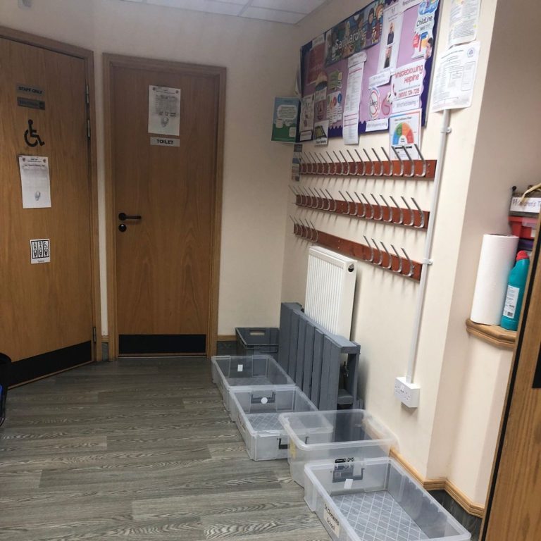 Our bright, child-friendly cloakroom gives little ones the perfect start to their day. Low hooks help children hang up their own coats and bags, building confidence and independence. Clear labelled tubs keep belongings tidy and easy to spot. A simple, welcoming space that helps children feel ready for fun.