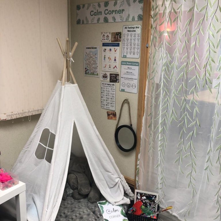 Our Calm Corner is a peaceful, nurturing space where children can take a moment to relax, reset, and regulate their emotions. With soft textures, cosy seating, and a selection of sensory tools, it offers a safe place for children to step away from busy play and find comfort. Visual supports and calming prompts help them recognise their feelings and choose strategies that work for them, encouraging emotional awareness and independence.